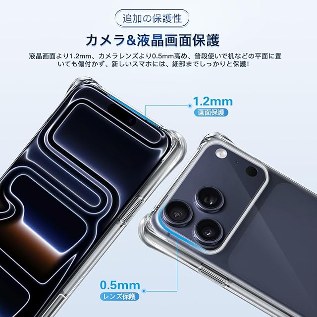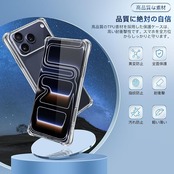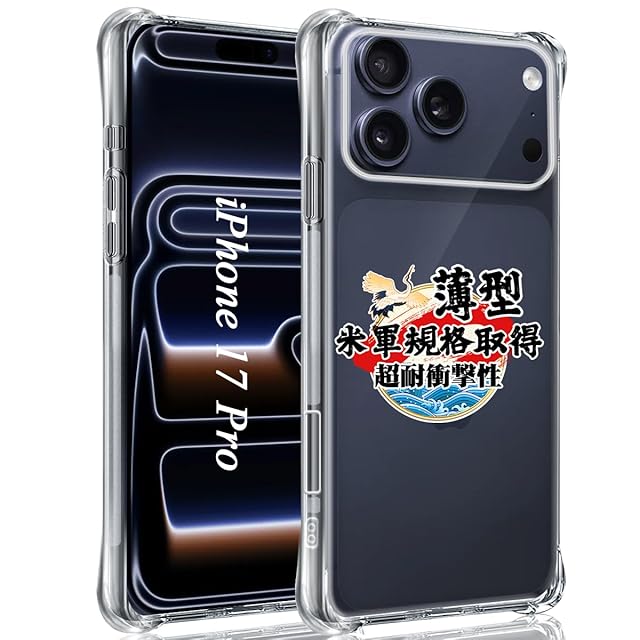 <b>対応機種:対応 iPhone 17 pro</b> <br><b>購入前に対応機種をご確認よろしくお願い致します</b>高品質のTPU素材を採用した保護ケースは、四隅には高耐震クッションを搭載しており、高い耐衝撃性です。スマホを全方位からしっかりと守ります。<br><b>【製品特徴】</b> <br>①超高耐衝撃性②滑りにくい③抜群な透明感④超精密なタッチ⑤ワイヤレス充電<br><b>【耐衝撃性、さらに強化】</b> <br>コンクリートの地面に厚さ5mmの合板を敷き、高さ1.2mから合計26回、違う角度から落下させる実験をしましたが、本体に傷はつきませんでした。<br>どんな衝撃的な旅にもスマホを守り抜く保護力を誇り、頑強なバリアを築き上げた。さらに、米国防総省が制定した米軍MIL規格に完勝し、業界最高の耐衝撃性を誇ることを証明しています。<br><b>【画面·カメラ保護】</b> <br>面と背面カメラ部のフチを高く設計し、液晶画面とカメラレンズをキズから保護します。<br>スマホを机などの平面に置いた場合に、液晶画面とカメラレンズが接触してできるキズが最小限に抑えられるよう、表側(液晶画面側)は1.2mmの、裏側(背面側)は1mmの高低差をつけ、ちゃんと携帯を保護することができます。<br><b>【精確な穴あけ加工】</b> <br>外周はTPU(ウレタン樹脂)で滑りにくく持ち易い上にクッション性も高いです、長く使っても熱がこもらない。<br>本体にぴったりフィイットするよう設計し、精巧をきわめていることの孔位で、充電するやイヤホンで音楽を聴くことにも支障なく使用でき、携帯へ負荷を掛けずに楽々装着できます。<br><b>【ワイヤレス充電対応】</b> <br>ケースはワイヤレス充電に対応しており、ケースを付けたまま充電器に置くだけで充電が可能。<br><b>【指紋防止】</b> <br>指紋防止、飛散防止 撥油コーティング加工されているため、耐油性に優れ、指紋がつきにくく、付着した汚れなどは簡単に拭きとれます<br><b>【簡単に脱着する方法】</b> <br>スマホを横向きに左手で持ち。右手の親指でいphone17proカメラの部分を上に押しながら、右手の差し指でスマホケース右上の角を下に押し出してケースを外す。