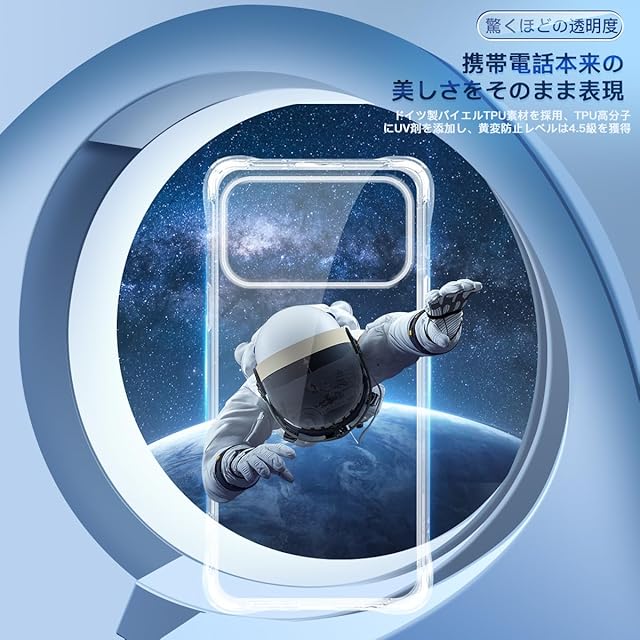 【黄変防止強化材質·驚くほどの透明度】ドイツ製 TPU 素材(バイエルン産)を採用しており、TPU に UV 剤を添加することで、黄変防止性能が JIS 規格 4.5 級に達しています。スマホを長時間使用しても、光沢感を維持できます!背面の光透過率は 99% に達し、透き通った高い透明度を誇ります。対応 iPhone 17 pro 本来のデザイン美を損なわず、洗練された外観を引き立てます。