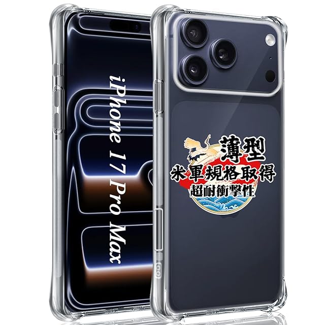 <b>対応機種:対応 iPhone 17 Pro max</b> <br><b>購入前に対応機種をご確認よろしくお願い致します</b>高品質のTPU素材を採用した保護ケースは、四隅には高耐震クッションを搭載しており、高い耐衝撃性です。スマホを全方位からしっかりと守ります。<br><b>【製品特徴】</b> <br>①超高耐衝撃性②滑りにくい③抜群な透明感④超精密なタッチ⑤ワイヤレス充電<br><b>【耐衝撃性、さらに強化】</b> <br>コンクリートの地面に厚さ5mmの合板を敷き、高さ1.2mから合計26回、違う角度から落下させる実験をしましたが、本体に傷はつきませんでした。<br>どんな衝撃的な旅にもスマホを守り抜く保護力を誇り、頑強なバリアを築き上げた。さらに、米国防総省が制定した米軍MIL規格に完勝し、業界最高の耐衝撃性を誇ることを証明しています。<br><b>【画面·カメラ保護】</b> <br>面と背面カメラ部のフチを高く設計し、液晶画面とカメラレンズをキズから保護します。<br>スマホを机などの平面に置いた場合に、液晶画面とカメラレンズが接触してできるキズが最小限に抑えられるよう、表側(液晶画面側)は1.2mmの、裏側(背面側)は1mmの高低差をつけ、ちゃんと携帯を保護することができます。<br><b>【精確な穴あけ加工】</b> <br>外周はTPU(ウレタン樹脂)で滑りにくく持ち易い上にクッション性も高いです、長く使っても熱がこもらない。<br>本体にぴったりフィイットするよう設計し、精巧をきわめていることの孔位で、充電するやイヤホンで音楽を聴くことにも支障なく使用でき、携帯へ負荷を掛けずに楽々装着できます。<br><b>【ワイヤレス充電対応】</b> <br>ケースはワイヤレス充電に対応しており、ケースを付けたまま充電器に置くだけで充電が可能。<br><b>【指紋防止】</b> <br>指紋防止、飛散防止 撥油コーティング加工されているため、耐油性に優れ、指紋がつきにくく、付着した汚れなどは簡単に拭きとれます<br><b>【簡単に脱着する方法】</b> <br>スマホを横向きに左手で持ち。右手の親指でいphone17promaxカメラの部分を上に押しながら、右手の差し指でスマホケース右上の角を下に押し出してケースを外す。