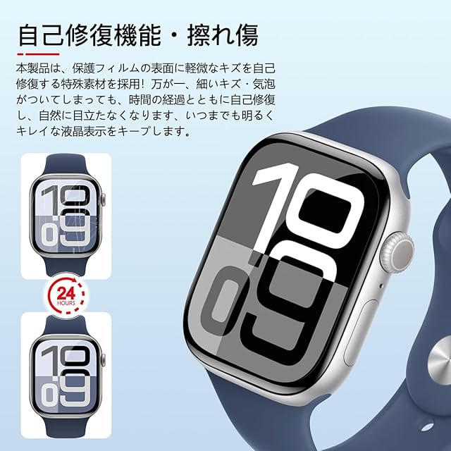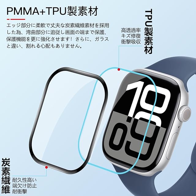 商品名:AQXNG 対応 Apple Watch series 10 46mm フィルム 画面保護フィルム 【3枚セット】 アップルウォッチ 10 46mm 用の 保護フィルム 柔軟なTPU製 炭素繊維 3D曲面 カバー 24時間自動修復技術 衝撃吸収 高透過率 高感度タッチ 指紋防止 撥油性 疎水性 自動吸着 気泡ゼロ 貼り付け簡単