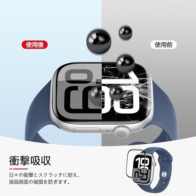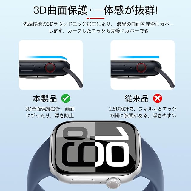 ★【3D曲面加工・全面保護】先端技術の 3D ラウンドエッジ加工により、液晶の曲面を完全にカバーします。カーブしたエッジも完璧にカバーできます。従来の 2.5D ラウンドエッジ製品よりもフィット感が優れています。対応 apple watch 46mmを全面的に保護し、角割れの防止にも効果的です。これはスクリーンに最大のカバー範囲を実現するように設計されました。