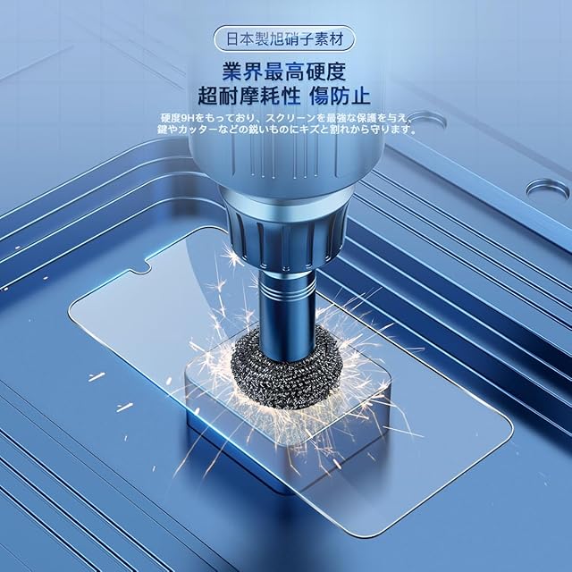 ★【業界最高硬度·耐衝撃性!】日本製旭硝子素材、9H硬度、またハードコーティング技術により、1メートルから30回約10kgの落下耐荷重試験に合格します,日常生活中に、うっかりカッター、キー、コインなどの鋭利のものを当てても傷がつきなく、耐久性がつよいです。また、飛散防止加工され、万が一ガラスが破損した場合、飛び散らず破片は張り付いた状態になり、使用者の安全を確保します。