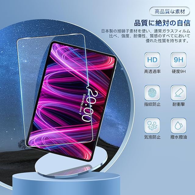 ★【業界最高硬度·耐衝撃性!】日本製旭硝子素材、9H硬度、またハードコーティング技術により、1メートルから30回約10kgの落下耐荷重試験に合格します,日常生活中に、うっかりカッター、キー、コインなどの鋭利のものを当てても傷がつきなく、耐久性がつよいです。また、飛散防止加工され、万が一ガラスが破損した場合、飛び散らず破片は張り付いた状態になり、使用者の安全を確保します。