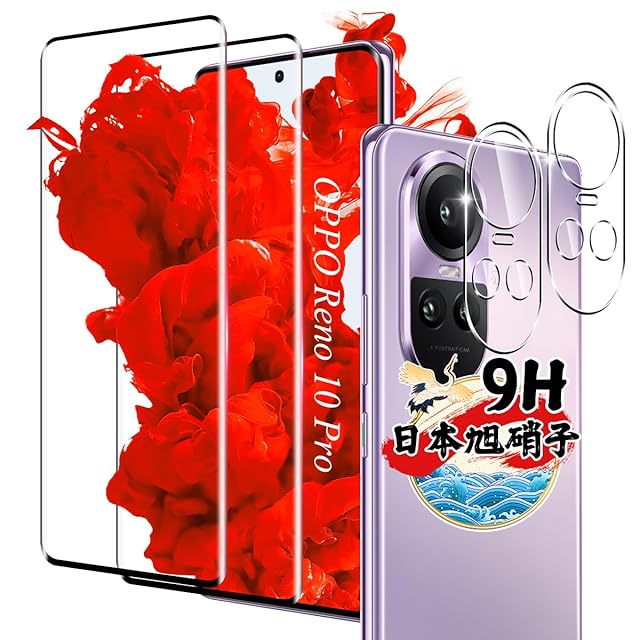 対応 OPPO Reno10 Pro 5G ガラスフィルム 2枚 + カメラフィルム2枚 【4枚セット 日本旭硝子製】OPPO Reno10 Pro 用 フィルム 強化ガラス 液晶 保護フィルム ケース 指紋認証対応 硬度9H 耐衝撃 飛散防止 3D Touch対応 高感度タッチ 指紋防止 自動吸着 気泡ゼロ 貼り付け簡単
