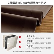 このカーテンは遮光度99.99%以上の「一級遮光」仕様で、外光をほぼ完全に遮断し、昼間でも室内を真っ暗にできます。遮光効果は色によって異なり、濃色ほど遮光性が高まるため、光を徹底的に遮りたい方にはダークカラーがおすすめです。素材は100%ポリエステルの高密度厚地で、遮熱・保温・防音効果に優れ、表裏同色のデザインで使い勝手も良好。三重織り技術により黒系糸を織り込んでおり、紫外線や西日をしっかりカットします。さらに、生地の特性により夏は涼しく、冬は暖かく保ち、冷暖房効率を向上させ光熱費削減にも貢献。洗濯機対応で形崩れしにくく、手入れも簡単です。機能性と実用性を兼ね備えた、年間を通じて活躍する高品質遮光カーテンです。