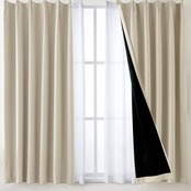 【高い機能性高密度な生地】黒裏地タイプを追加しました。通常の裏地より高い遮光性で、明るい色でも、より暗くなります。黒裏地付きの高密度なカーテンなので、遮光性はもちろん、断熱・保温性を上げて電気代の節約します。