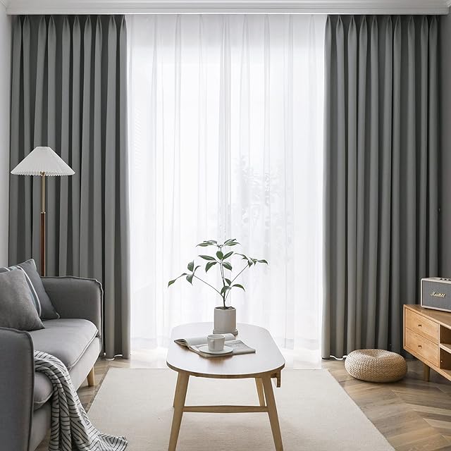 AIFY カーテン 4枚セット 1級 遮光 小窓 ドレープカーテン UVカット 形態記憶加工済み 断熱 節電対策 昼夜目隠し 保温 おしゃれ 洗える 洗濯機対応 (カーテン2枚 レース2枚) 幅150cm×丈135cm スモークグレー