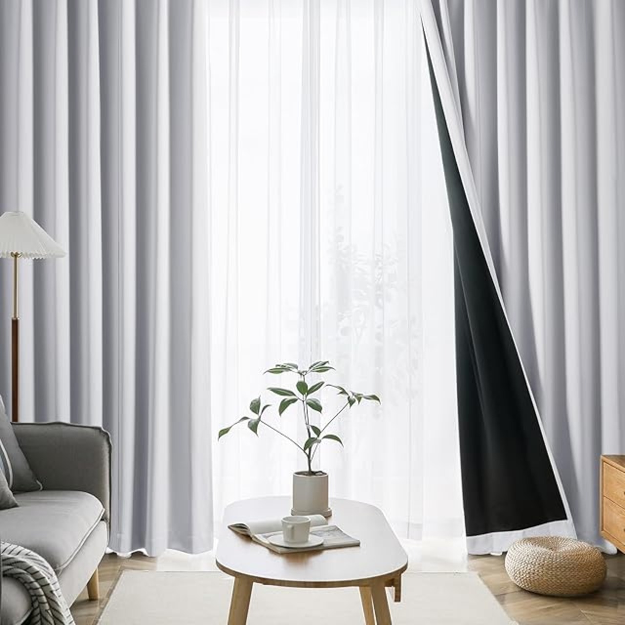 【99.9%以上遮光】迷ったらこれ!シンプル&機能性重視の方におすすめです。この4枚セット(99.9%以上遮光ドレープカーテン2枚,レースカーテン2枚)を選択する理由:①光沢を抑えたマットな質感が美しい。②黒ずみの少ないなめらかな生地。③快適に過ごせる優れた性能。遮光率99.9%以上、日差しの強い窓でもしっかりと遮光できるので、光をできる限りシャットアウトしたい方におすすめです。
