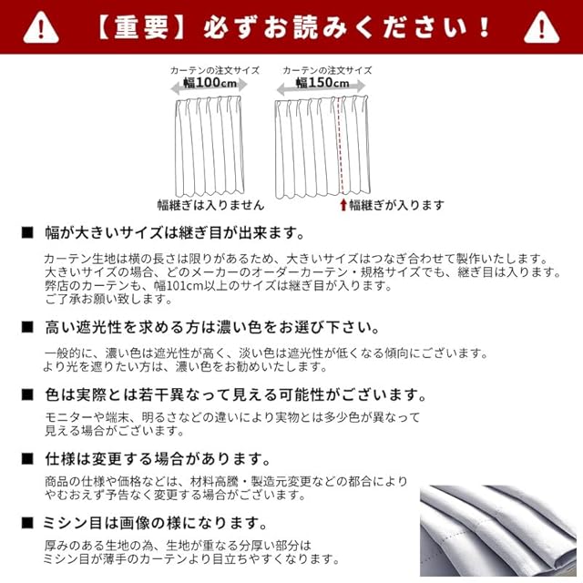 【高い機能性高密度な生地】黒裏地タイプを追加しました。通常の裏地より高い遮光性で、明るい色でも、より暗くなります。黒裏地付きの高密度なカーテンなので、遮光性はもちろん、断熱・保温性を上げて電気代の節約します。