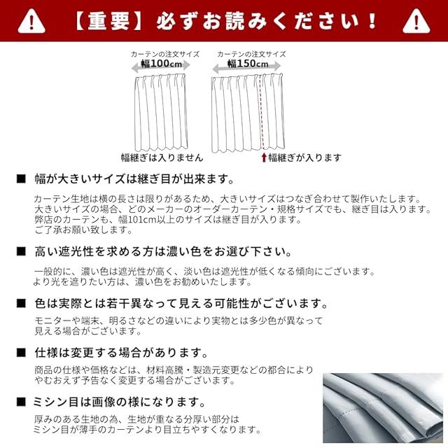 【1級遮光】迷ったらこれ!シンプル&機能性重視の方におすすめです。この4枚セット(1級遮光ドレープカーテン2枚、レースカーテン2枚)を選択する理由:①光沢を抑えたマットな質感が美しい。②黒ずみの少ないなめらかな生地。③快適に過ごせる優れた性能。遮光率99.9%以上、日差しの強い窓でもしっかりと遮光できるので、光をできる限りシャットアウトしたい方におすすめです。
