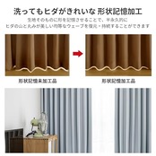 このカーテンは遮光度99.99%以上の「一級遮光」仕様で、外光をほぼ完全に遮断し、昼間でも室内を真っ暗にできます。遮光効果は色によって異なり、濃色ほど遮光性が高まるため、光を徹底的に遮りたい方にはダークカラーがおすすめです。素材は100%ポリエステルの高密度厚地で、遮熱・保温・防音効果に優れ、表裏同色のデザインで使い勝手も良好。三重織り技術により黒系糸を織り込んでおり、紫外線や西日をしっかりカットします。さらに、生地の特性により夏は涼しく、冬は暖かく保ち、冷暖房効率を向上させ光熱費削減にも貢献。洗濯機対応で形崩れしにくく、手入れも簡単です。機能性と実用性を兼ね備えた、年間を通じて活躍する高品質遮光カーテンです。