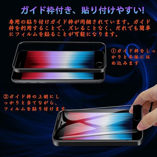 商品名:対応 iPhone SE (第3世代 / 第2世代) ガラスフィルム 【全面保護】 iPhone SE3 / SE2 液晶 保護フィルム iphone 8/7 フィルム 【貼り付け簡単/指紋防止/気泡防止/飛散防止/キズ防止】 アイフォン SE3/SE2/8/7 強化ガラスフィルム (2枚)