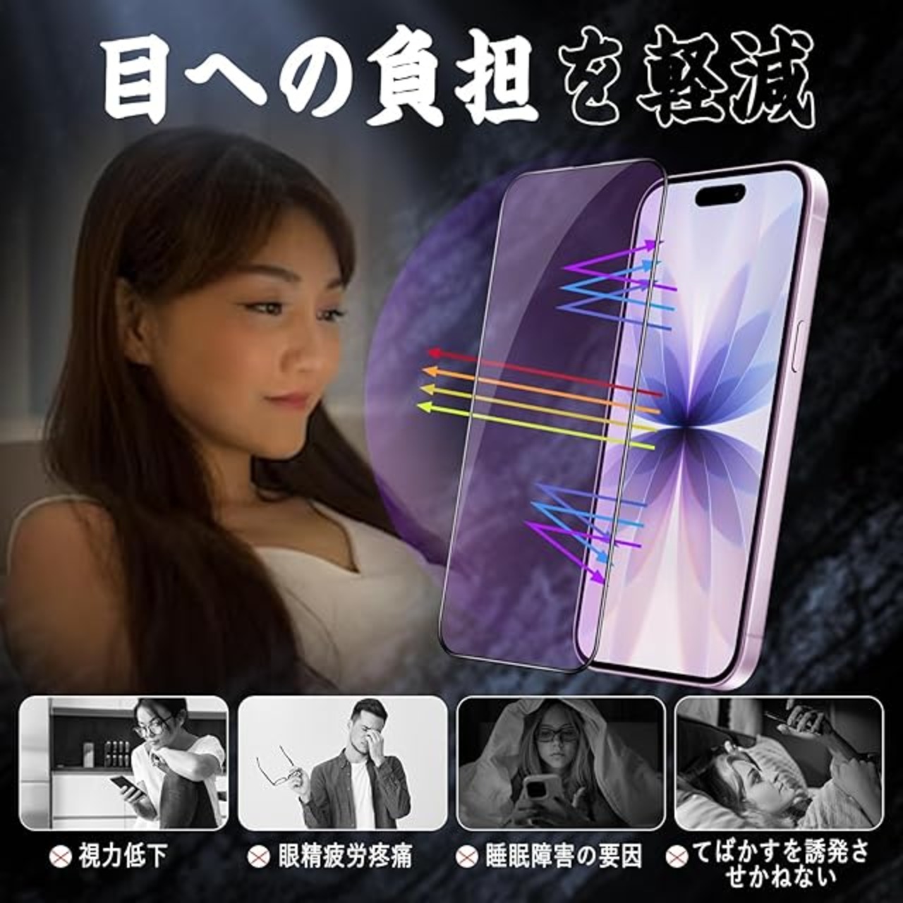 商品名:対応 iPhone 17 / iPhone 16pro ガラスフィルム 【ブルーライトカット】 保護フィルム (専用ガイド枠付き/貼り付け簡単/指紋防止/気泡防止/飛散防止/キズ防止) iPhone 17 / iPhone 16pro 強化ガラスフィルム (1枚)