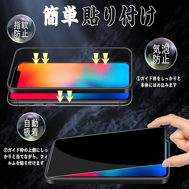 【貼付け簡単・専用ガイド枠付き】専用の貼り付けガイド枠が同梱されています。ガイド枠を利用することで、初心者でも簡単に貼り付けます。すべての失敗の発生を防ぐことができて、ご心配を完全に解消します!グレードアップしたイオン自働吸着技術を採用して、初心者でもたった3ステップ、10秒で簡単に綺麗で貼り付けることができます。