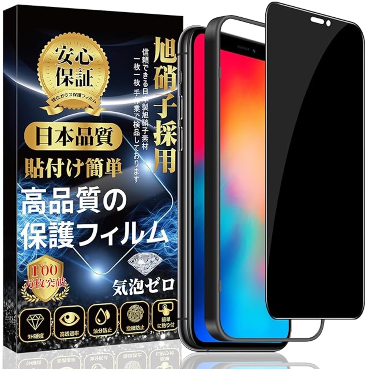 対応 iPhone 11Pro /iPhone XS/iPhone X ガラスフィルム 【覗き見防止】 強化ガラス 【ガイド枠付き/貼り付け簡単/指紋防止/気泡防止/飛散防止】 アイフォン 11Pro /XS/X 強化ガラスフィルム (1枚)