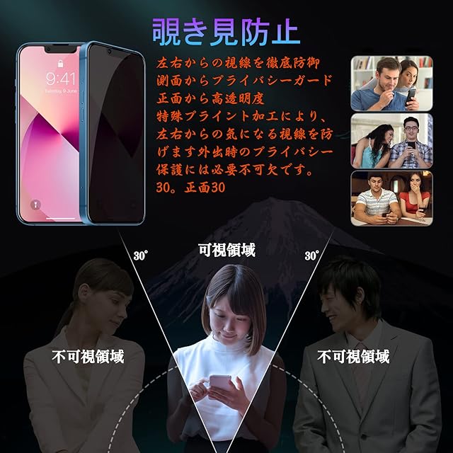 商品名:対応 iPhone 13mini ガラスフィルム 【覗き見防止】 強化ガラス iPhone 13mini 保護フィルム 【日本旭硝子製 貼り付け簡単 指紋防止 気泡防止 飛散防止 キズ防止】 アイフォン 13mini 強化ガラスフィルム (1枚)
