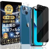 対応 iPhone 13 ガラスフィルム (1枚) + iPhone 13 カメラフィルム (1枚) 【覗き見防止】 専用ガイド枠付き 保護フィルム [日本旭硝子製 硬度9H 高透過率 飛散防止] アイフォン 13 レンズフィルム + アイフォン 13 フィルム