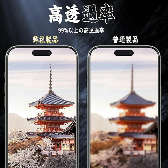 【高透過率・高感度タッチ】 改良された高透過率のフィルムで、何も貼っていないような感覚で液晶画面の美しさをお楽しみいただけます。手触り感が優れておりOLED画面の美しさをお楽しみいただけます。滑らかで快適な手触りを実現します。快適な操作性は持続可能。また写真と画像の品質には影響ないし撮影時ても違和感なく被写体をリアルに見せることができます。