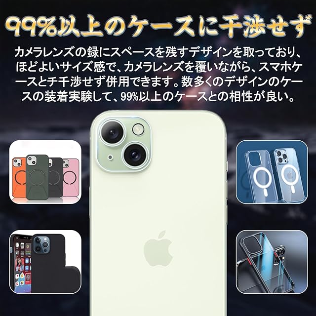 【99%以上のケースに干渉せず】カメラレンズの縁にスペースを残すデザインを取っており、ほどよいサイズ感で、カメラレンズを覆いながら、スマホケースと干渉せず併用できます。数多くのデザインのケースの装着実験して、99%以上のケースとの相性が良い。