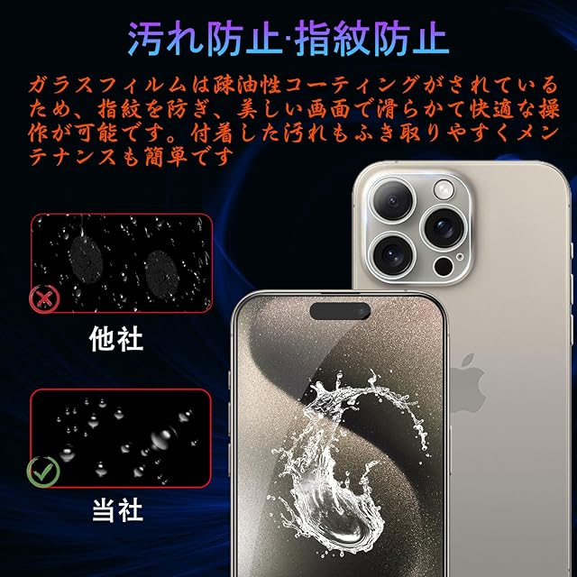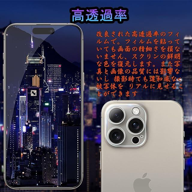 【対応機種】:iPhone 15pro ガラスフィルム (1枚) + iPhone 15pro カメラフィルム (1枚) ※<<安心>> 商品が届いた後、輸送中に破損したり、数が合わない場合がございましたら、お気軽に弊社までご連絡くださいませ。お客様からのお問い合わせ内容に応じて代替品交換・返金対応を提供致します。