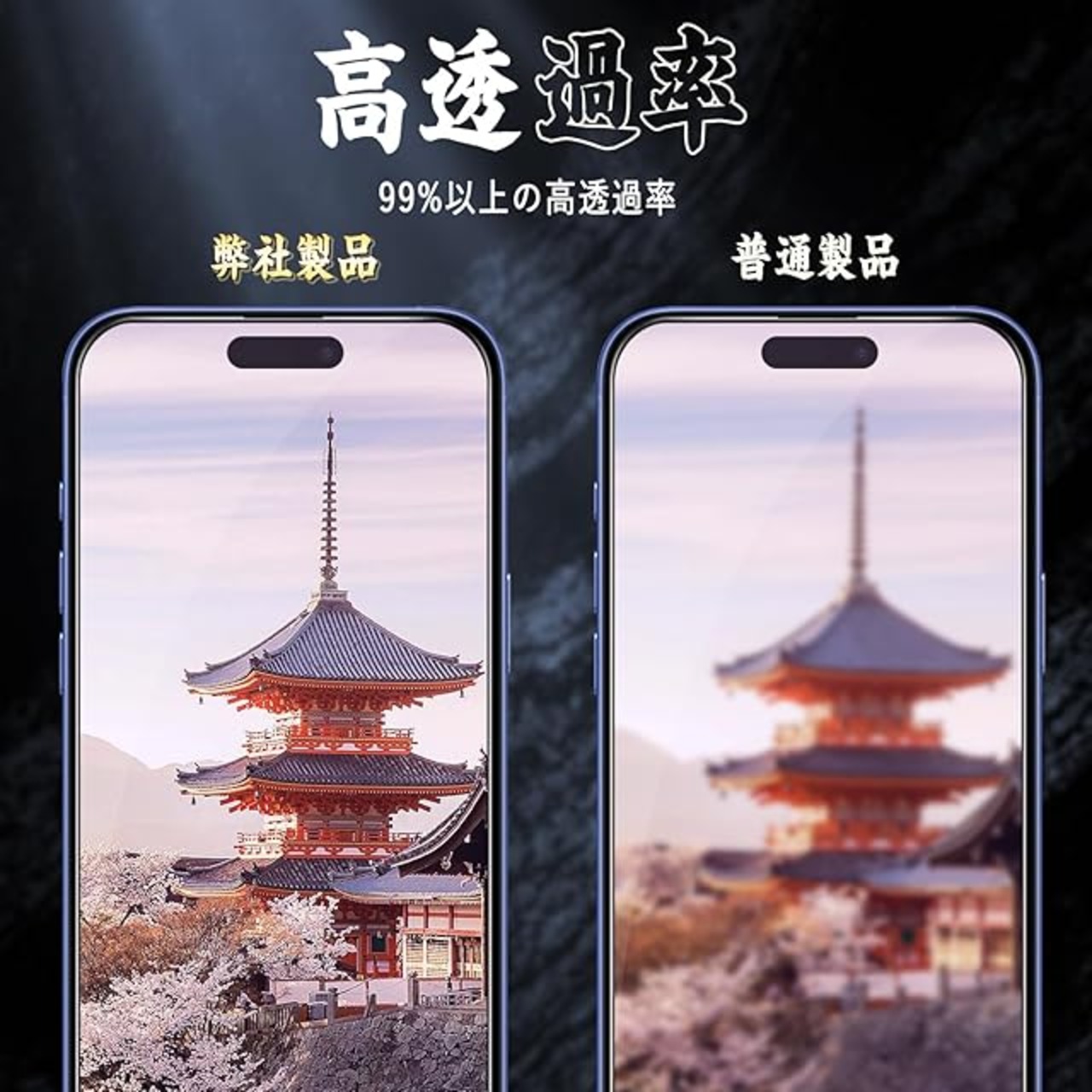 【高透過率・高感度タッチ】 改良された高透過率のフィルムで、何も貼っていないような感覚で液晶画面の美しさをお楽しみいただけます。手触り感が優れておりOLED画面の美しさをお楽しみいただけます。滑らかで快適な手触りを実現します。快適な操作性は持続可能。また写真と画像の品質には影響ないし撮影時ても違和感なく被写体をリアルに見せることができます。
