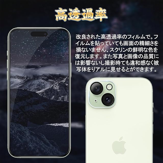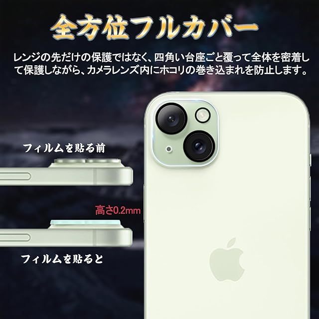 商品名:対応 iPhone 15 /iPhone 15plus カメラフィルム レンズ フィルム [全面保護/貼り付け簡単/指紋防止/気泡防止/飛散防止/キズ防止] iPhone 15 / iPhone 15plus カメラカバー 【2枚セット】