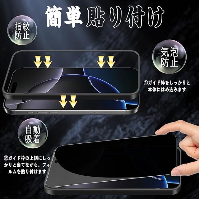 対応 iPhone 16pro ガラスフィルム iPhone 16pro 全面保護 フィルム 【覗き見防止】 [ガイド枠付き/貼り付け簡単/指紋防止/気泡防止/飛散防止] アイフォン 16pro 強化 ガラスフィルム (1枚)