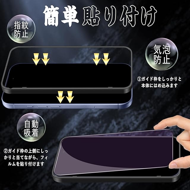 【貼付け簡単・専用ガイド枠付き】専用の貼り付けガイド枠が同梱されています。ガイド枠を利用することで、初心者でも簡単に貼り付けます。すべての失敗の発生を防ぐことができて、ご心配を完全に解消します!グレードアップしたイオン自働吸着技術を採用して、初心者でもたった3ステップ、10秒で簡単に綺麗で貼り付けることができます。