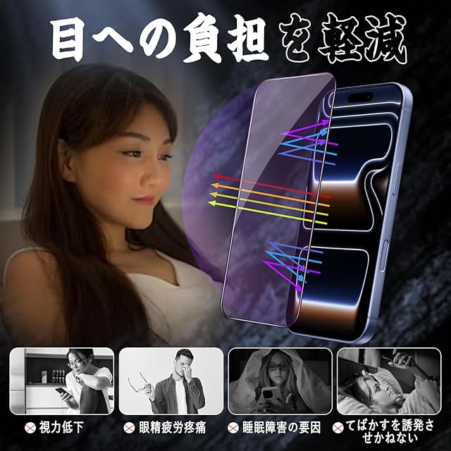 【ブルーライトカット・目の疲れ軽減】スマートフォンの時代では、人々はより多くの時間を電話の画面を見つめて過ごします。ただし、画面が多くのブルーライトを生成し、人々の目に害を与え、近視の度合いを深め、視覚疲労を引き起こし、睡眠障害があるかもしれません。ブルーライトカット反射技術によりブルーライトを大幅にカットでき、目に掛かる負担を軽減させ、画面を長時間眺める方に効果を発揮します。