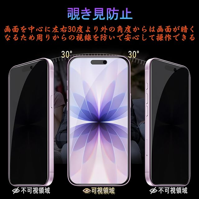 商品名:対応 iPhone 17 ガラスフィルム (1枚) + iPhone 17 カメラフィルム (1枚) 【覗き見防止】 専用ガイド枠付き 強化ガラス [貼り付け簡単 硬度9H 指紋防止 気泡防止] アイフォン 17 レンズフィルム + アイフォン 17 フィルム