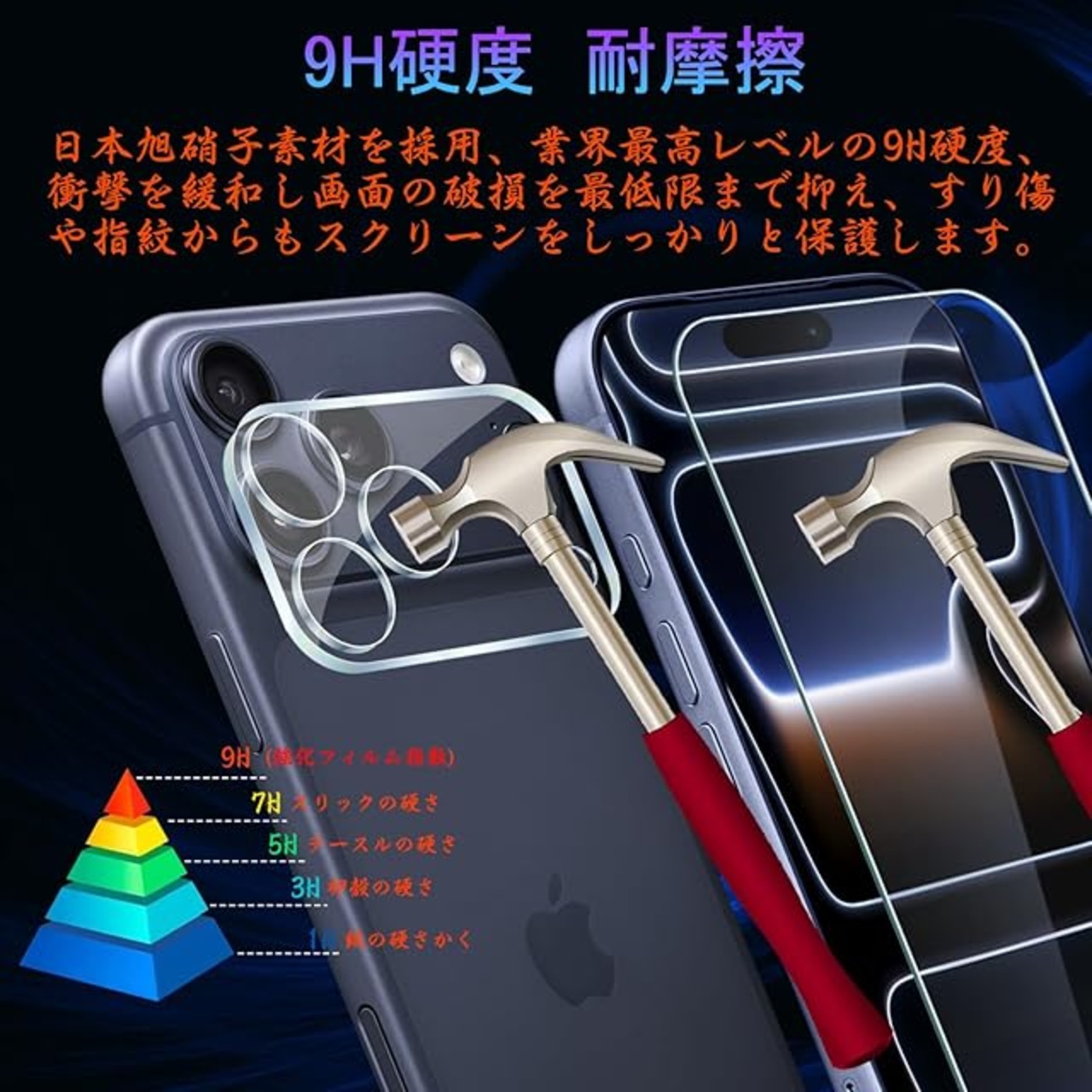 【日本製旭硝子製素材・硬度9H】表面硬度9Hと非常に高い硬度の持つ素材を採用し、外部の衝撃を吸収し、画面への損傷を最小限に抑えることができます。日々の生活の中で発生しうるスリ傷から液晶画面を保護します、耐久性がありながら損傷しにくいです。