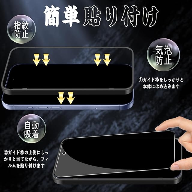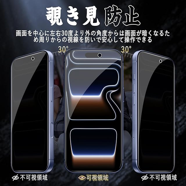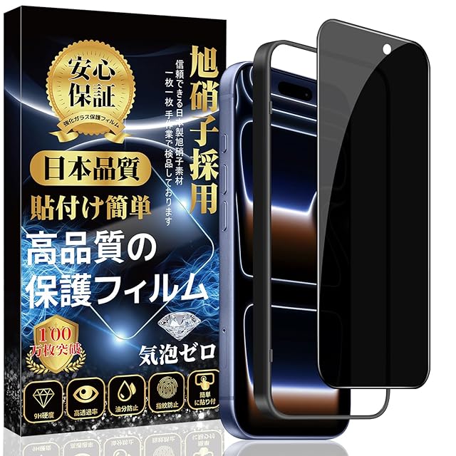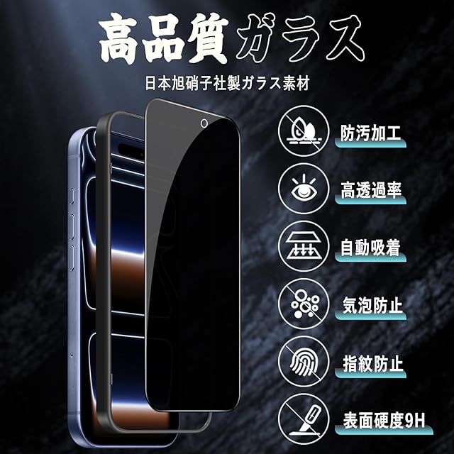 商品名:対応 iPhone 17 Pro Max ガラスフィルム 【覗き見防止】 保護フィルム (専用ガイド枠付き/貼り付け簡単/指紋防止/気泡防止/飛散防止/キズ防止) iPhone 17 Pro Max 強化ガラスフィルム (1枚)