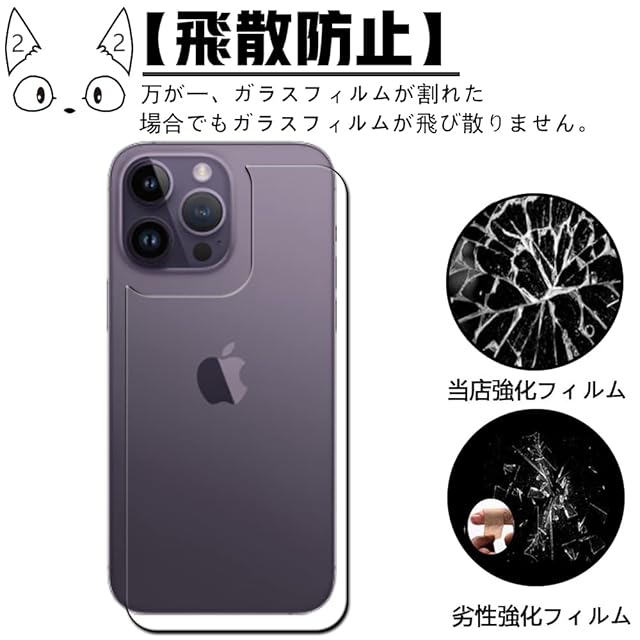 【2枚入】iPhone 14 Pro Max 用の 背面フィルム アイフォン 14 Pro Max 用の 背面保護フィルム 高硬度9H 高透過率 気泡防止 飛散防止 傷防止 耐指紋 撥油性 貼り付け簡単iPhone14 Pro Max 対応