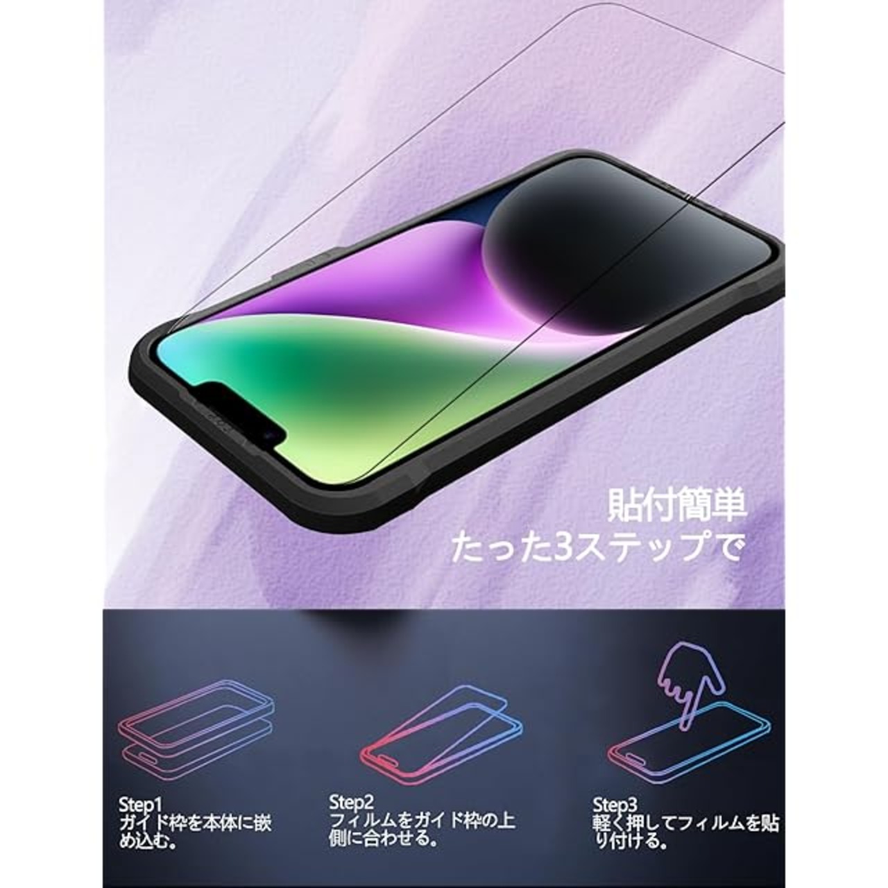 【対応機種】iphone14/13 Pro/13 に適応しています! ガラスフィルム*2枚、フィルム貼り道具*2 、ガイド枠付き*1取付枠は取付けをより容易にすることができ、インストール プロセスで泡を作り出しません。