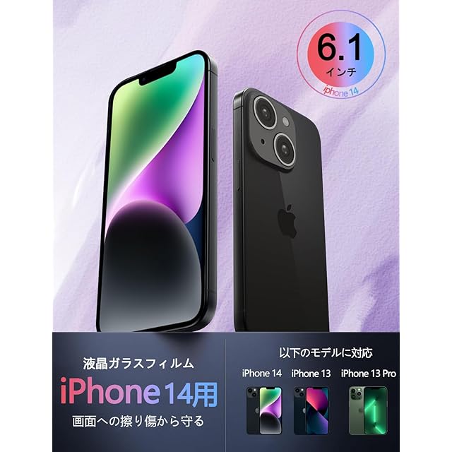 <p> <strong>【対応機種】</strong>iphone14/13 Pro/13 に適応しています!ガラスフィルム*2枚、フィルム貼り道具*2 、ガイド枠付き*1取付枠は取付けをより容易にすることができ、インストール プロセスで泡を作り出しません </p> <p> <strong>【高品質日本製素材】</strong>日本製旭硝子素材の採用、また硬度は業界最高レベルの9Hであり、カッタ一などの鋭利なものを当てたとしても損傷なく長らく使えます。特殊な飛散防止設計により、万一割れてしまった際にもガラス片が飛散することなく、高い安全性を実現しています。 </p> <p> <strong>【高透過率・高感度タッチ】</strong>高透過率を持つ極薄ガラスフィルムに高耐久撥油コーティングが施され、画面の精細さを保ちながらも、指紋や汚れが付きにくくなります。すべすべな滑り感を実現し、美しい画面とスムーズな操作体験をあなたにお届けします。 </p> <p> <strong>【フルカバーデザイン 】</strong>正確なラウンドエッジ加工により、引っ掛かり感がなくサイドからの衝撃を和らげ気持ち良い滑らかな質感を実現しました。 </p> <p> <strong>【気泡無しと簡単貼り付け】</strong>丁寧に加工したので、気泡が入りにくくて、自己吸着できるシリコン粘着シートで、簡単的に貼り付けます。ガラスを液晶に置くだけで自然に吸着、簡単に気泡が抜いて行くので、誰でも簡単、綺麗に貼ることができます。 </p>