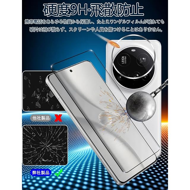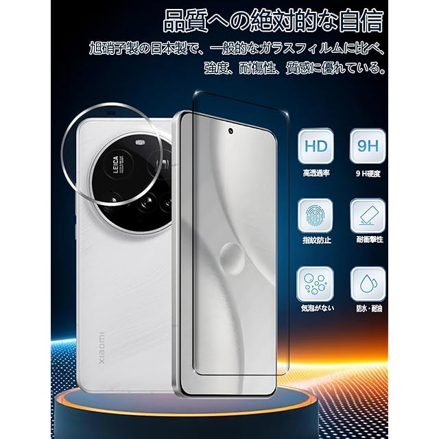 商品名:xiaomi 15 ultra フィルム 【2枚ガラスフィルム+2枚レンズ保護】 指紋防止 xiaomi 15 ultra ガラスフィルム 高感度 高透過率 シャオミ15ultra 用の 保護フィルム 貼り付け簡単 衝撃吸収 干渉しない