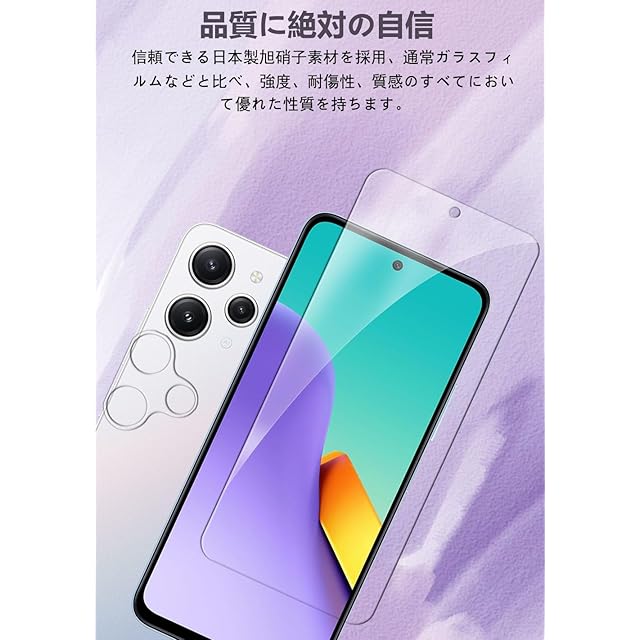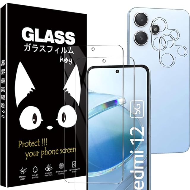 商品名:Xiaomi Redmi 12 5G フィルム【4枚セット】ガラスフィルム2枚+カメラフィルム2枚 Redmi 12 5G 用の 強化ガラス 硬度9H 厚さ0.26 旭硝子製素材 保護フィルム Redmi 12 5G 保護フィルム Redmi 12 5G キズ防止 飛散防止 気泡防止 反射防止 汚れに強い 自動吸着 高 精細 2.5D ラウンドエッジ加工 対応 Redmi 12 5G