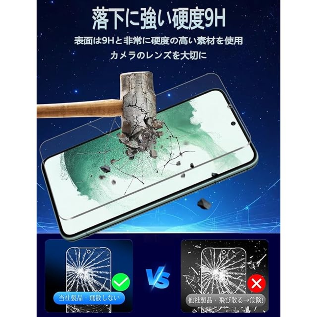 商品名:Galaxy S22 保護フィルム 2枚+Galaxy S22 カメラ保護 2枚 表面硬度9H SCG13/SC-51C フィルム ワンタッチ貼付け 気泡ゼロ 衝撃 ギャラクシー S22 用の ガラスフィルム 超クリアな画質 高光沢、自動吸着 耐油性