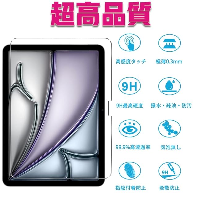 <p> <strong>⭕【対応機種】</strong>iPad Air 11 (M2) 用 ガラスフィルム。ご注文の際に、モデル番号を対照し、確認をお願いします。極薄の厚さでタッチスクリーンの反応を損なわず、快適な操作が可能。優れたウィンドウディスプレイを持ち、なめらかな指滑りを実現するリアルガラスを採用、好感度で快適操作。 </p> <p> <strong>⭕【 トップ・オブ・表面硬度9H ~ ナイフでも傷付かない 】</strong>製造方法と素材を徹底して追求した結果、ガラスフィルムでは最も硬い9Hの表面硬度を実現しました。カッターやナイフでも傷つけられない硬度9Hが、あなたの液晶画面を守ります。 </p> <p> <strong>⭕【高透過率】</strong>高品質の旭硝子を採用しており、光の透過率が99%で、透明度が普通の ガラスよりも高くて、元々の画質が損なわれません。高画質な写真や動画を楽しむことができます。 </p> <p> <strong>⭕【気泡無しと簡単貼り付け】</strong>丁寧に加工したので、気泡が入りにくくて、4つ簡単な手順のみで誰でも簡単に貼り付けることができます。自己吸着できるシリコン粘着シートで、簡単的に貼り付けます。ガラスを液晶に置くだけで自然に吸着、簡単に気泡が抜いて行くので、誰でも簡単、綺麗に貼ることができます。 </p> <p> <strong>⭕【24ヶ月 】</strong>ご購入日から24ヶ月の間、製品に不具合がある場合、いつでもお気軽に弊社と連絡ください。交換または返金が可能です。アカウントサービス内の「アカウントサービス」→「注文履歴」→「販売元」→「質問する」から、お気軽にお問合せ下さい。弊社が24時間全日中お問い合わせを対応できます。 </p>