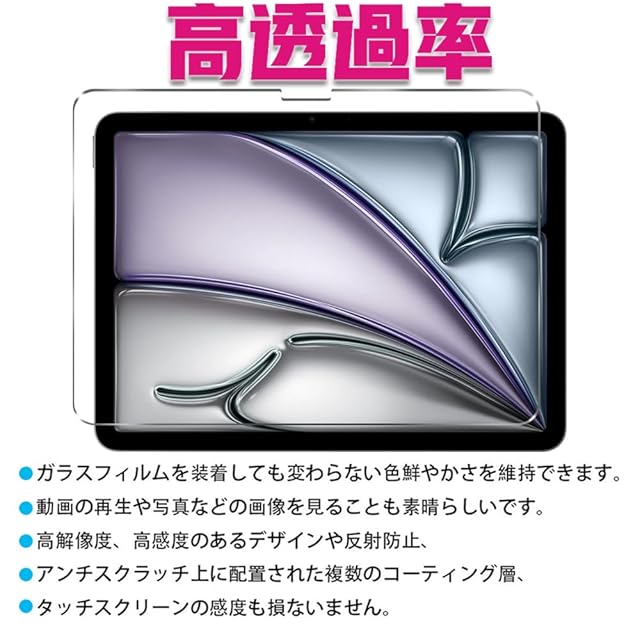 Huy iPad Air 11用のガラスフイルム 2024 対応(M2) 11インチ 用のフイルム【2枚セッ】日本旭硝子製 強化ガラス 液晶 保護フィルム 貼り付け簡単 硬度9H 防指紋