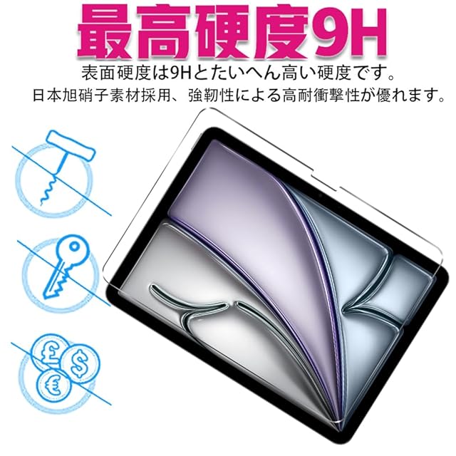 商品名:Huy iPad Air 11用のガラスフイルム 2024 対応(M2) 11インチ 用のフイルム【2枚セッ】日本旭硝子製 強化ガラス 液晶 保護フィルム 貼り付け簡単 硬度9H 防指紋