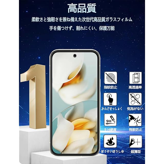 商品名:Google Pixel 9A 保護フィルム 2枚+ Google Pixel 9A カメラ保護 2枚+ガイド枠付き 表面硬度9H グーグルピクセル9A フィルム ワンタッチ貼付け 気泡ゼロ 衝撃 Google Pixel 9A用の ガラスフィルム 超クリアな画質 高光沢、自動吸着、耐油性