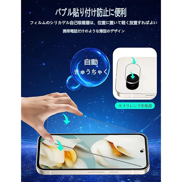 ·【気泡ゼロ・貼付け簡単】フィルム は静電吸着技術を採用しており、が直接設備に吸着できます、シリコン自己吸着層をもっており位置を合わせて置くだけで気泡なしで貼れ、ガラスを液晶に置くだけで自然に吸着、簡単に気泡が抜いて行くので、誰でも簡単、綺麗に貼ることができます。
