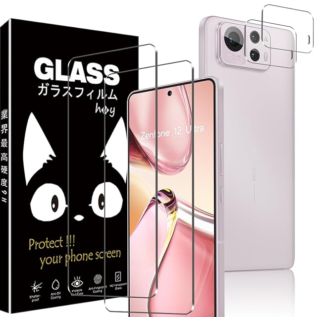 For Zenfone 12 Ultra フィルム- 旭硝子仕様 Zenfone 12 Ultra 用の保護フィルム 2枚 + カメラフィルム 2枚 強化ガラスフィルム 硬度9H 高 透過率 耐衝撃 飛散防止 傷防止 気泡ゼロ 耐指紋 自動吸着 撥油性