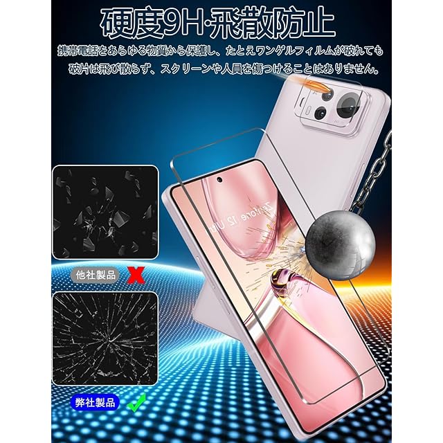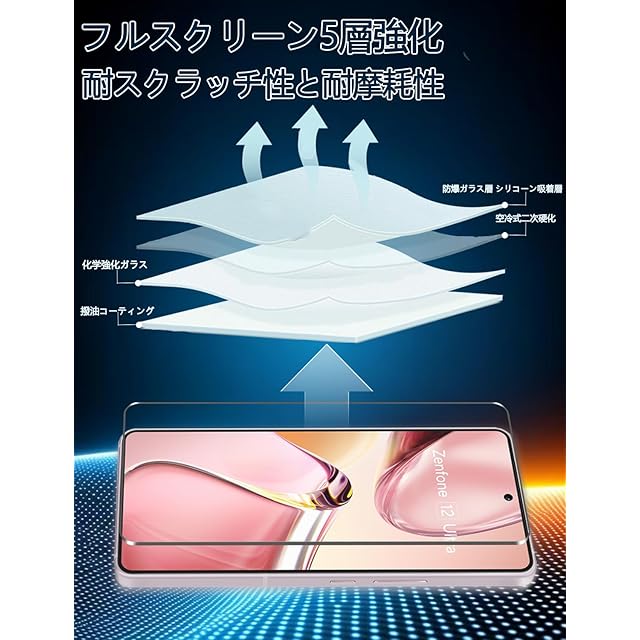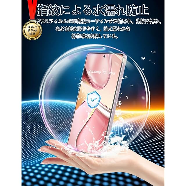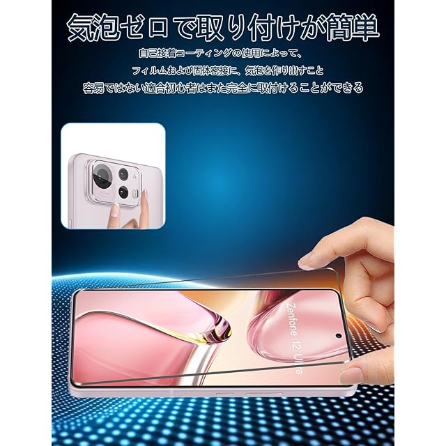 商品名:For Zenfone 12 Ultra フィルム- 旭硝子仕様 Zenfone 12 Ultra 用の保護フィルム 2枚 + カメラフィルム 2枚 強化ガラスフィルム 硬度9H 高 透過率 耐衝撃 飛散防止 傷防止 気泡ゼロ 耐指紋 自動吸着 撥油性