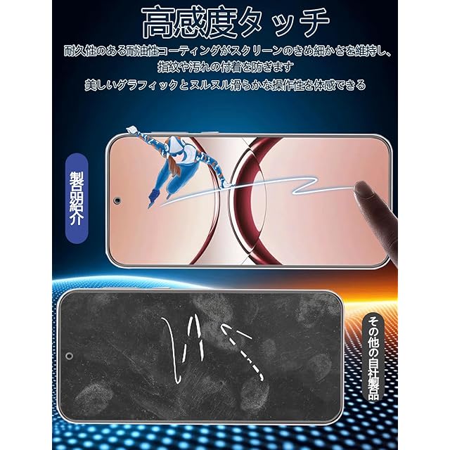 【耐油汚れ・指紋防止】撥水・撥油加工で指紋や皮脂の付着を防げ、画面を鮮やかに彩ります。フィルムの表面はハードコート加工、オイルコーティング加工、スムースタッチ加工といった様々な特殊加工を組み合わせ油分やほこり、指紋に対しての抵抗力が非常に強くなったので、スマホをずっときれいなボディーを保持させ、頻繁にスマホを拭く悩みがなくなります。