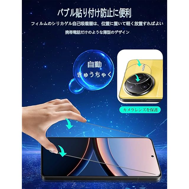 ·【気泡ゼロ・貼付け簡単】フィルム は静電吸着技術を採用しており、が直接設備に吸着できます、シリコン自己吸着層をもっており位置を合わせて置くだけで気泡なしで貼れ、ガラスを液晶に置くだけで自然に吸着、簡単に気泡が抜いて行くので、誰でも簡単、綺麗に貼ることができます。