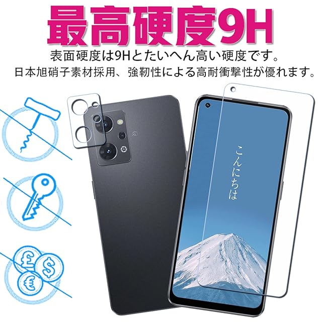 商品名:【2+2枚セッ】Huy oppo reno9a/OPPO Reno7 A フィルム+ OPPO Reno9 A/OPPO Reno7 A カメラフィルム oppo reno7a 用の ガラスフィルム oppo reno 9a 液晶保護フィルム reno 9a 強化ガラス フィルム 硬度9H 旭硝子製素材 超耐久 撥水撥油 指紋認証鋭敏 指紋防止 飛散防止処理