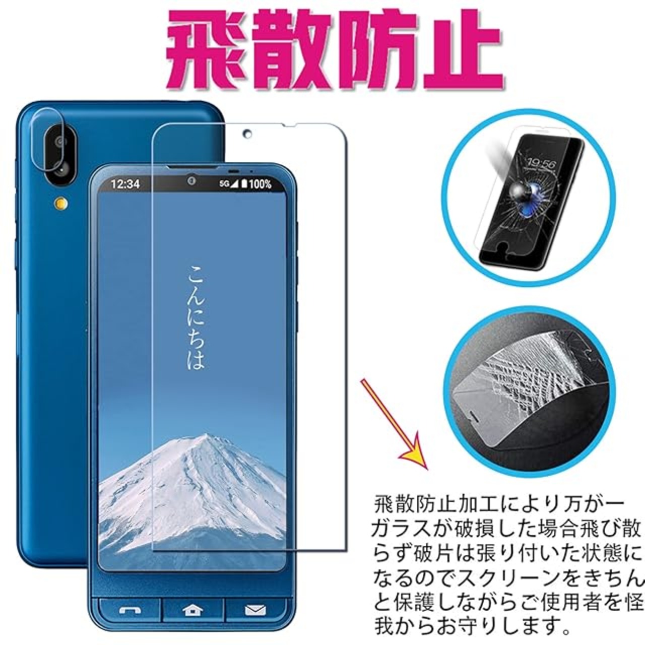 【2+2枚セッ】Huy SoftBank シンプルスマホ6 用のガラスフイルム シンプルスマホ 6 用の フイルム 日本旭硝子製 強化ガラス 液晶 保護フィルム 貼り付け簡単 硬度9H 防指紋 softBank シンプルスマホ6 用の ガラスフィルム(2枚入)+カメラフィルム(2枚入)
