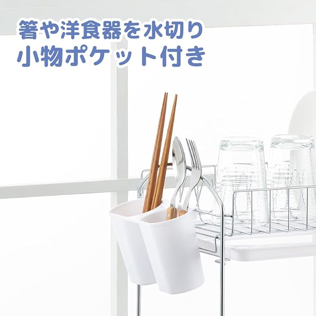 商品名:タマハシ(Tamahashi) デイズ 立てて乾かせる 水切りラック 約260×410×355mm 2段 カトラリーケース付き スライド式のトレー 食器乾燥 省スペース 水切りかご DS-05